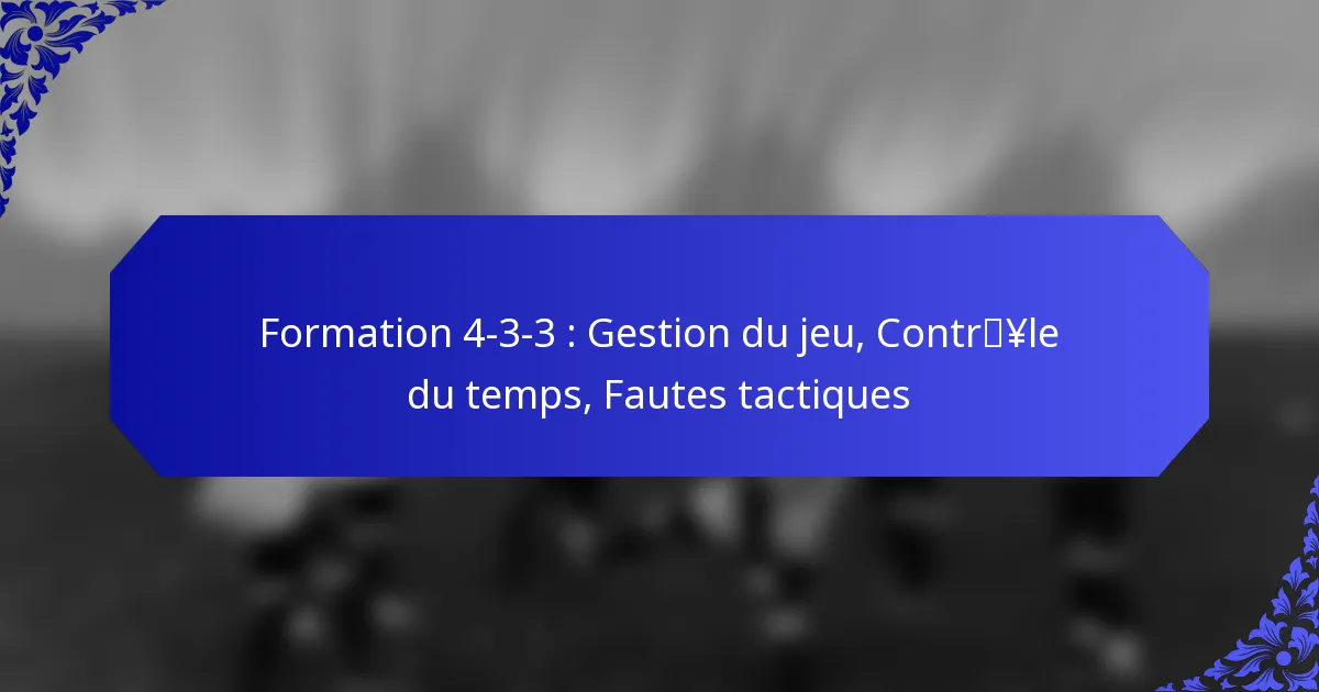 La formation 4-3-3 est un dispositif tactique au football qui équilibre la puissance offensive avec la solidité défensive, comprenant quatre défenseurs, trois milieux de terrain et trois attaquants. Une gestion efficace du jeu au sein de cette formation met l’accent sur le contrôle du match grâce à la conservation du ballon, des fautes tactiques et des substitutions stratégiques, permettant aux équipes de dicter le tempo et de sécuriser un avantage sur leurs adversaires.