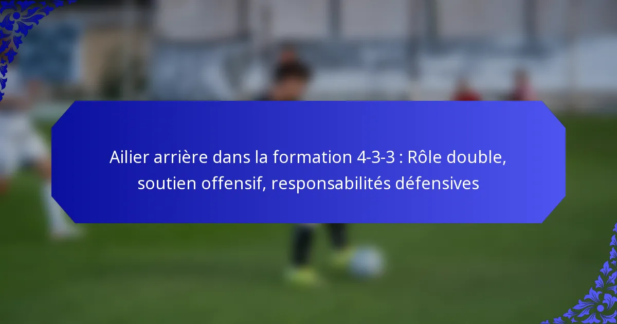 Un arrière latéral dans la formation en 4-3-3 joue un rôle crucial en combinant des responsabilités offensives et défensives. Ce poste exige des joueurs qu’ils soutiennent les actions offensives tout en remplissant également des tâches défensives, ce qui les rend vitaux pour la stratégie globale de l’équipe.